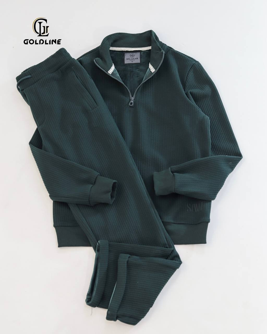 ترينينج مع بطانة صوف خفيف , نص سحاب , لون واحد , قماش مخطط