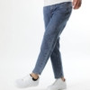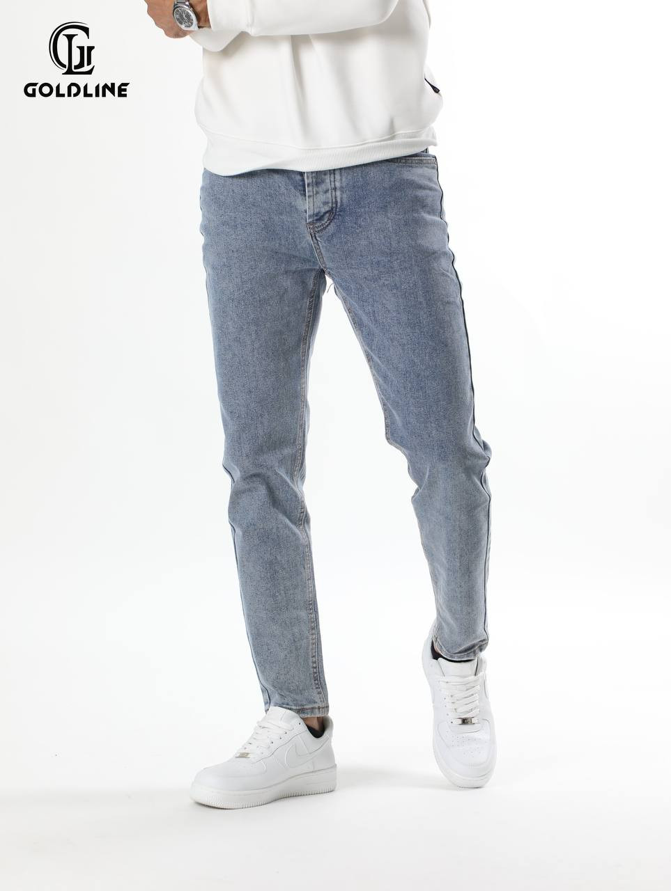 بنطلون جينز بقصة نحيفة وغسلة فاتحة يوفر مظهراً عصرياً وضيقاً مثالياً للارتداء الكاجوال.