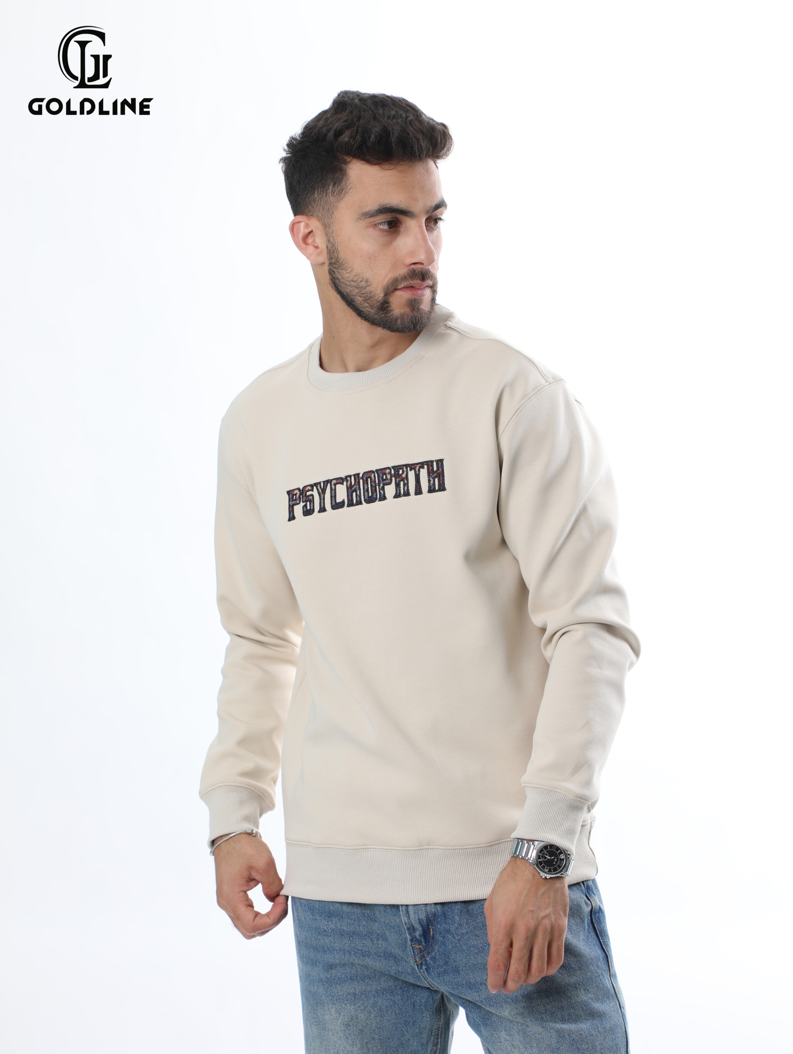 sweater with the Word PHSYCHOPATH on the chest and back wrote with caps, heavy lining.