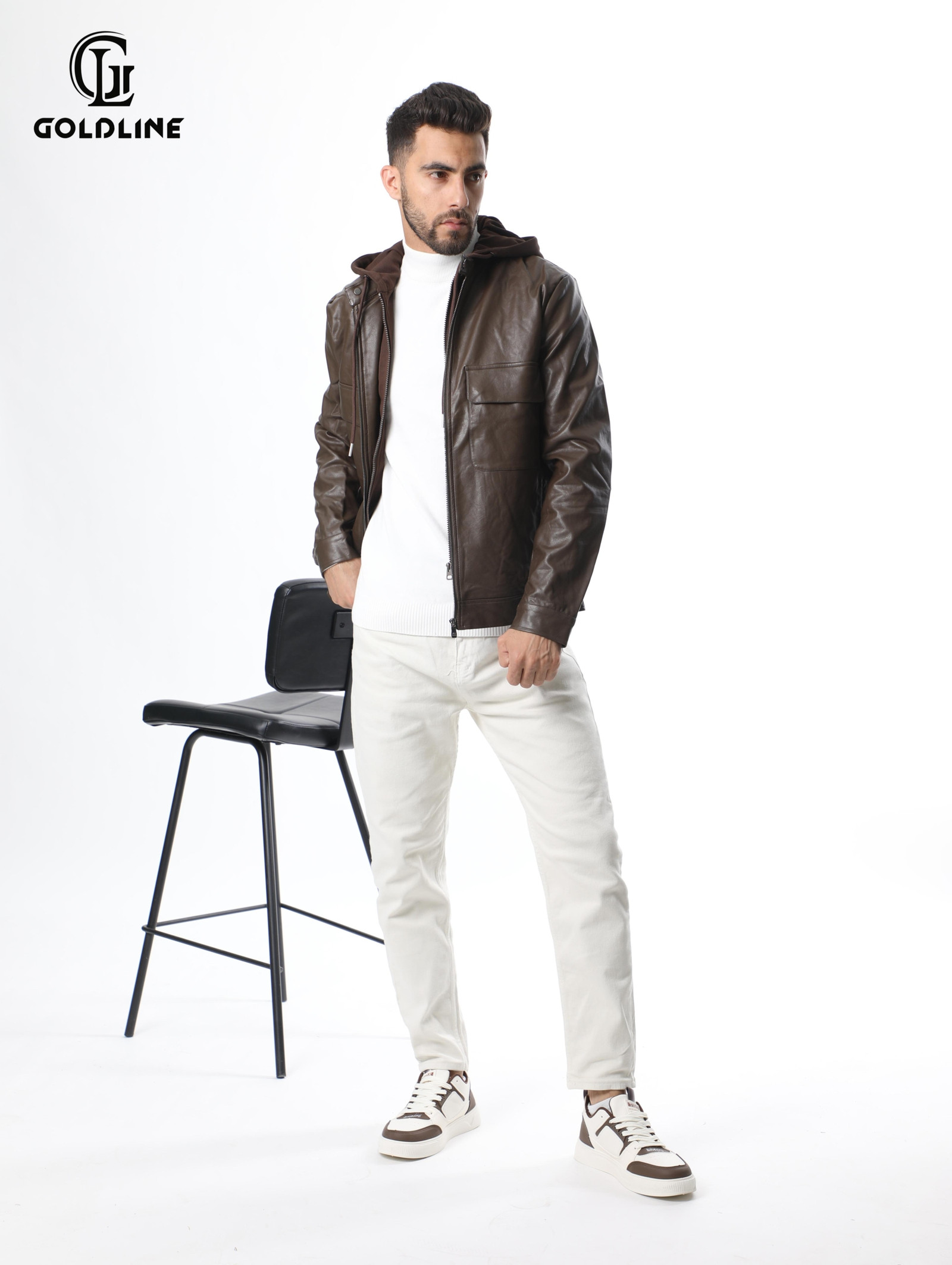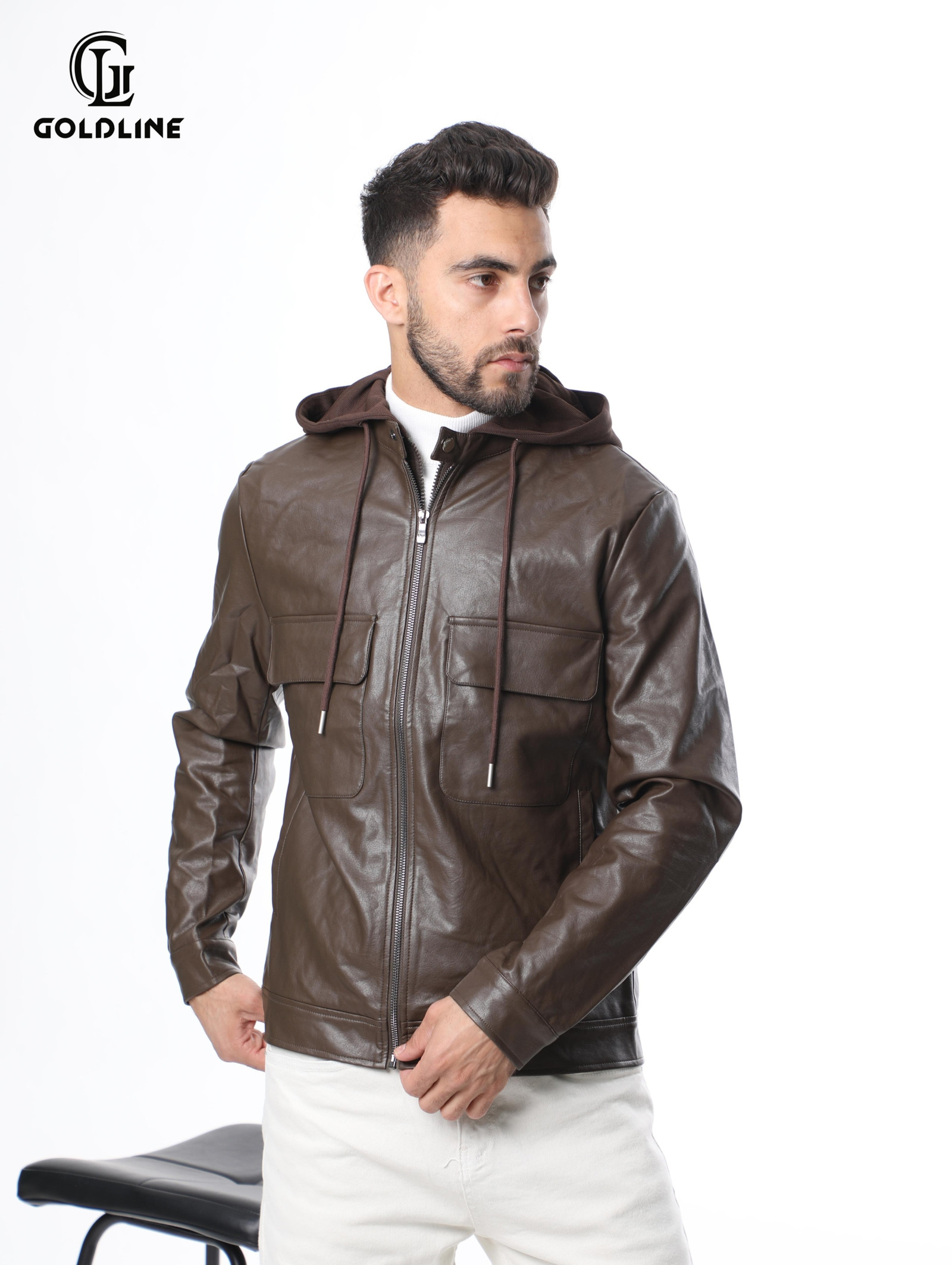 جكيت جلد مع هودي و وزن مريح و تصميم حديث.
