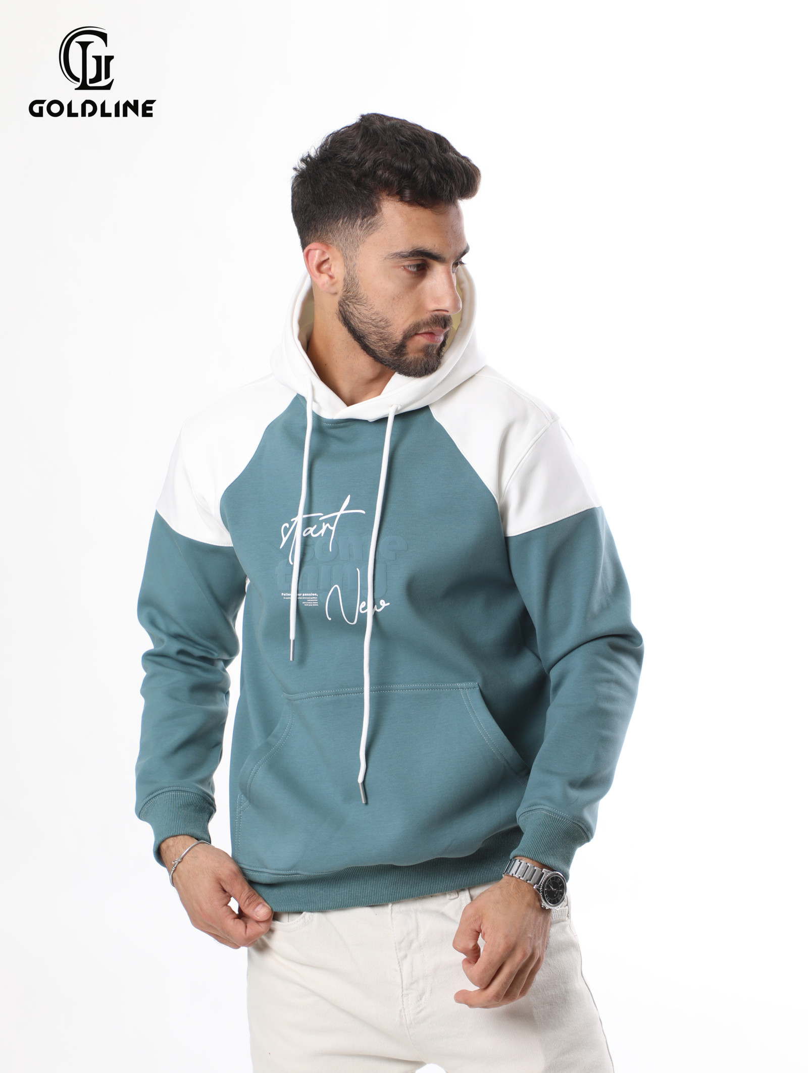 هودي مع أكتاف بيضاء و كتابة بسيطة من الأمام و بطانة صوف خفيف
